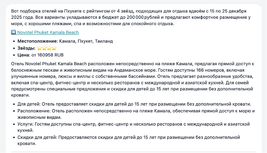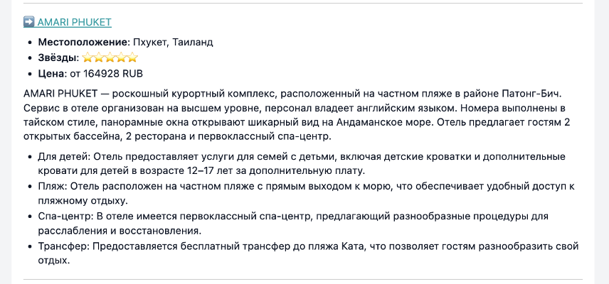 Сервис укажет среднюю температуру, море, инфраструктуру и бюджет, чтобы агент мог предложить клиенту вдохновляющий и релевантный вариант.
